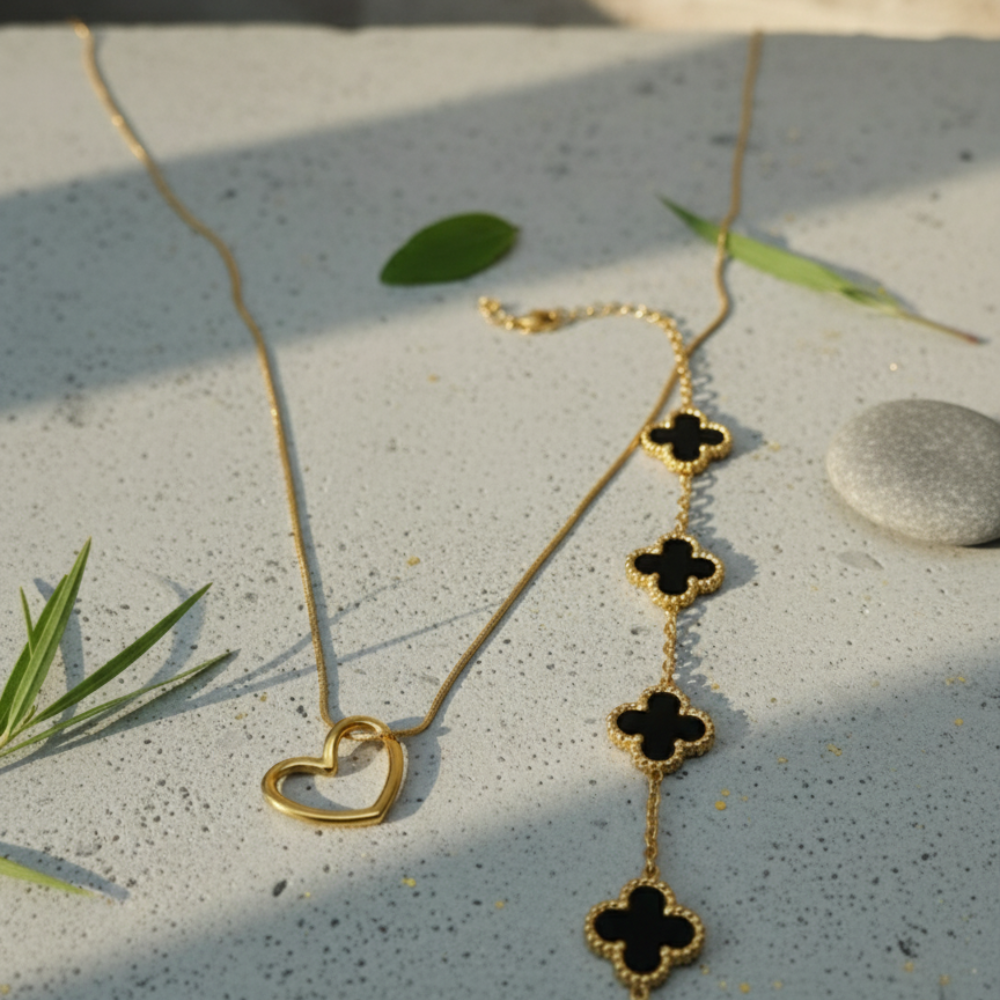 Classic Gold Bundle: Elegance in a Pair Get both the stunning Black Clover Bracelet and the elegant Snake Chain Zircon Bracelet at a special bundle price! Each piece is also available separately.
